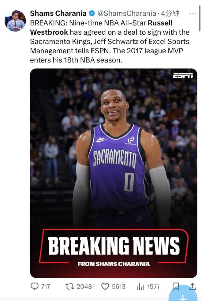 昨晚深夜,Shams 报道:九次入选 NBA 全明星的拉塞尔·威斯布鲁克已同意加盟国王队。这位2017年MVP即将开始他职业生涯的第18个赛季。后续补充报道:威少签下一年基础合同,年薪360万美元。自7月份以来,双方在整个休赛期每周、每月都有通话,保持着沟通。看到这个消息,我想大多数人的第一想法都是一样的:威少终于签约了!在今年自由市场正式开启之前,威少拒绝了合同上剩余的一年球员选项,成为一名完全自由球员。当时,人们认为威少可以与掘金重新谈判下一份1+1合同,或者寻找另一个买家。没想到,威少成为自由球员大约有四个月的时间——有点长,但幸运的是,他不像很多老将那样有球气。至于为什么是国王,这并不奇怪,因为几乎是唯一一个真正拥有过真正的国王的人。整个休赛期与威少的接触就是王者。据Shams不久前的报道称:威少和国王队彼此有浓厚的兴趣,他与国王队的管理层有着广泛的联系。签约之所以没有进行,主要是因为和尚交易没有进展。不过,最近发生的一件事变成了机会——基冈穆雷手指韧带撕裂,至少缺阵4-6周,所以威少也得到了机会。但客观地说,威少真的适合当今的王者吗?答案可能真的很难说。这并不是否认威少的能力。相比之下,上赛季在掘金队,威少打出了近三年来最好的常规赛表现:场均出场27.9分钟,得到13.3分4.9篮板6.1助攻1.4抢断,三分命中率44.9%/32.3%/66.1%,真实投篮命中率53.2%。在季后赛中,我们斯特布鲁克在第二轮输给雷霆,表现不佳,但他在快船首轮的成功无疑做出了贡献: - 首轮对阵快船,他场均得到13.8分、4.8个篮板和2.4次助攻,三分球命中率为43.3%/41.9%/70.6% - 在第二轮对阵雷霆:场均2.7个篮板和2.4次助攻助攻,百分之三 投篮命中率34.8%/21.9%/69.6%。威少的优点是热情、经验丰富。他的比赛总是充满活力。虽然他已经36岁了,但是他的冲击力依然很强,作为控球后卫他可以组织进攻,而且他的防守上赛季也有所进步。但他的缺点也很明显。他不仅缺乏三分球,而且终结能力也很差。作为一名控球后卫,他也犯了很多错误。有时一些进攻选择和防守判断也令人不安。最典型的就是约基奇的60+上赛季拿下三双。威少最后的犯规直接葬送了胜利。尽管有这些缺点,但不可否认的是,上赛季威少才是掘金真正的第六人。掘金队给他签下高薪当然没有亏本。也就是说,这也与掘金队的阵容有关。后者天气真的很糟糕。威斯布鲁克担任第六人,部分原因是没有人上场。我们来看看国王队的情况。今年夏天的手术并不多。主力球员萨博尼斯、德罗赞和拉文都留在了球队,解雇了瓦兰得到了萨里奇,选中了克利福德,同时签下了施罗德和尤班克斯。季前赛,国王队派出了首发阵容:施罗德+拉文+德罗赞+基冈穆雷+小萨博尼斯,这套首发阵容进攻不错,但是防守不能说很好。只有施罗德和基冈穆雷可以防守。看替补席,萨里奇+克利福德+蒙克+尤班克斯+埃利斯+德文卡特r,显然他们的后防线不缺球员。蒙克和埃利斯可以打球,德文卡特和克利福德也很年轻。另一方面,这是前锋。当纳胡·基冈·穆雷(Keegan Murray)登录时,似乎只有萨里奇挺身而出。然而后者对于上赛季的掘金来说几乎毫无用处。他总共只打了16场比赛,场均只有3.5分、3.1个篮板和1.4次助攻。他在季后赛中直接被抛弃了。国王队签下威斯布鲁克的最好情况是交易蒙克或德文卡特之一。还有传言称国王队在休赛期曾多次换人。在为威斯布鲁克腾出后卫位置的同时,他们应该尽可能地交易来寻找可靠的前锋替代者。但事实是,在基冈·穆雷受伤后,国王队没有任何调整就直接签下了威斯布鲁克。他们可以把德罗赞移到四号位(在马刺时期打过),然后蒙克首发,或者让萨里奇打伪首发——无论哪种方式,国王的内线防守可能会崩溃。当然,每个人都有被打脸的倾向。上赛季,国王队的替补得分和助攻都是联盟倒数第二。或许威少的加盟确实能够给替补席注入活力,同时还能起到更衣室的领导作用,届时国王队将会焕然一新。无论如何,我仍然为威少感到高兴。新赛季他将继续活跃在NBA——国王队是威少在2019年离开雷霆队后加盟的第六支球队(不包括爵士队),此前他们都没有打过两个赛季。我期待这次有所不同。