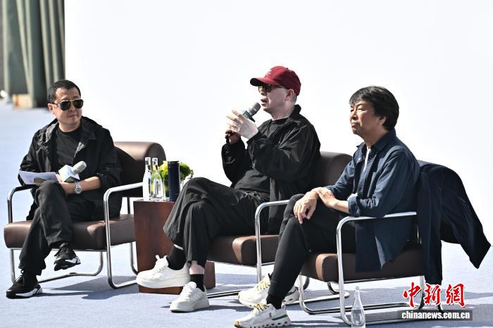 9月25日、第 9 回ピンギャオ国际映画祭の「マスターズアンドダイアログ」イベントで、中国の监督であるジア・チャンケ(左)((は、监督のフェン・シアオガン(中央)および作家のリュー・ゼニュンと会话をしました。